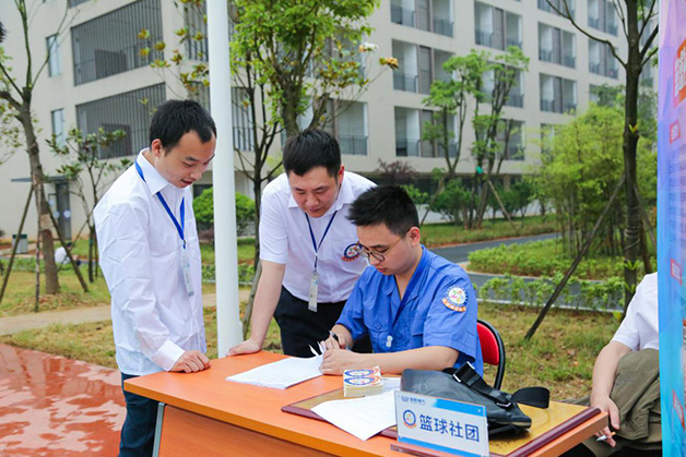啟動儀式結束后,各社團在活動現(xiàn)場招募社員并在各自活動區(qū)域開展文體活動,吉主席參觀了員工社團活動中心并予以贊賞,希望員工都能積極參與社團活動,能夠在園區(qū)快樂工作、健康生活。
