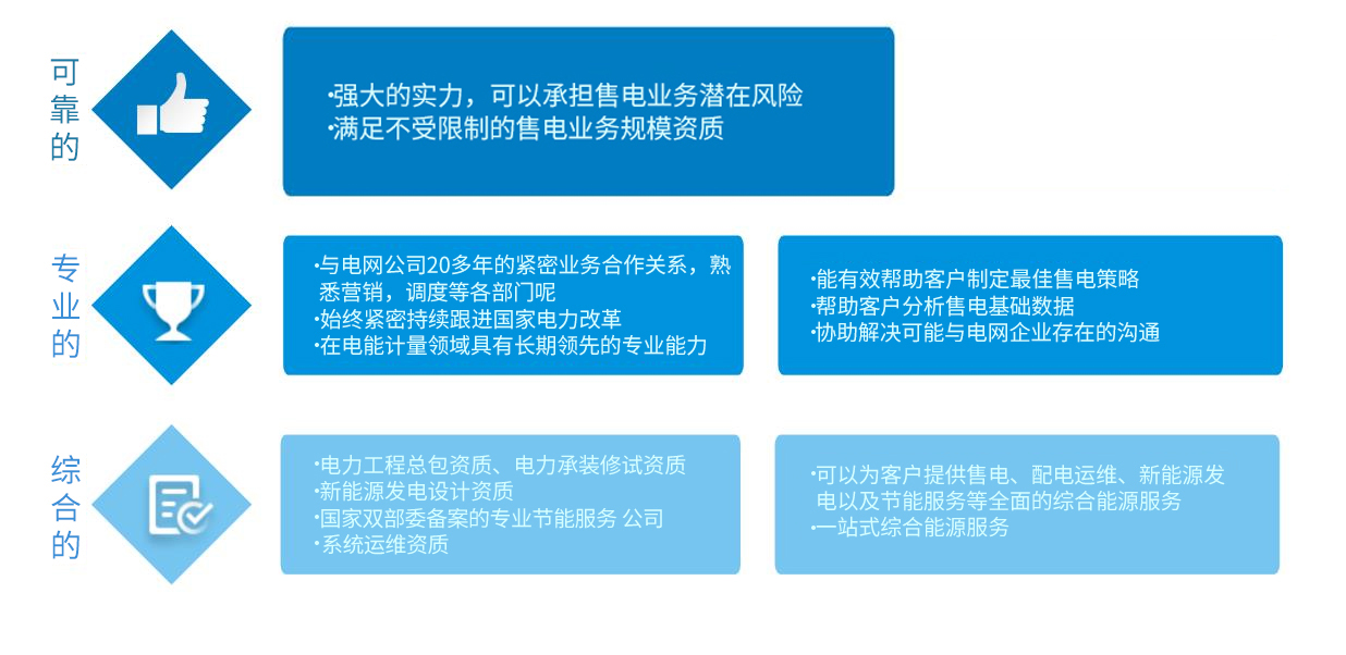 以增值服務(wù)為方向,提供節(jié)能、新能源、配電運(yùn)維、綜合能源管理等增值性服務(wù),并可創(chuàng)新需求側(cè)相應(yīng)、碳資產(chǎn)等服務(wù)。