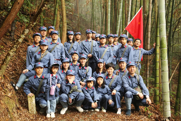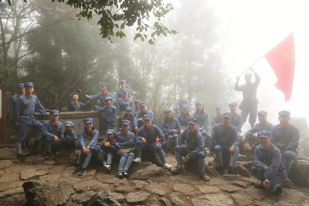 朱毛挑糧小道位于井岡山西北面黃洋界下面,原名五里橫排,是當(dāng)年紅軍從寧岡挑糧上山路線的一小段,路為羊腸小道,崎嶇不平,并且經(jīng)常籠罩著白茫茫的霧氣。在這次紅色之旅中,全體成員身穿紅軍服裝,頭戴紅軍帽,打著裹腿,重走當(dāng)年紅軍百里挑糧的部分路程,大家在井岡山親身感受到革命年代紅軍的艱辛,這讓和平年代出生的我們對這種艱辛有更深刻的認(rèn)識(shí)和體會(huì)。