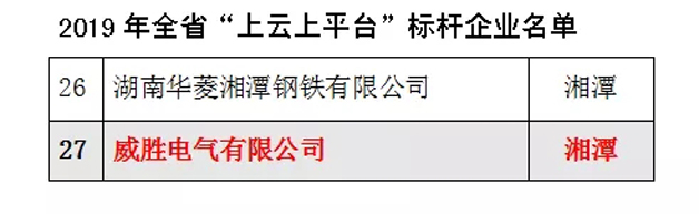 近日,省工信廳對外公布2019年全省“上云上平臺”標桿企業(yè)認定名單,全省共有40家企業(yè)通過認定,其中,湘潭市僅有兩家企業(yè),威勝電氣榜上有名。