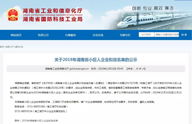 11月14日,湖南省工信廳公布了2019年湖南省小巨人企業(yè)擬定名單,經企業(yè)網絡申報,市州工信局、省財政直管縣工信局審核推薦及專家評審,湘潭19家企業(yè)成功入選,威勝能源產業(yè)技術有限公司榜上有名。