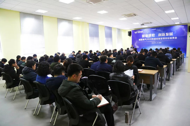 時序更替,留下奮斗者前進的足跡;一元復(fù)始,帶給開拓者無限的希望。1月8日下午,以“銳意進取、創(chuàng)新發(fā)展”為主題的威勝電氣 2020 年度經(jīng)營管理目標(biāo)宣貫會在電氣產(chǎn)業(yè)園順利召開,控股董事會吉主席、控股本部、威勝電氣董事會以及經(jīng)營管理團隊的領(lǐng)導(dǎo)、員工代表共計80余人參會,會議由威勝電氣行政人力總監(jiān)鄧超艷女士主持。