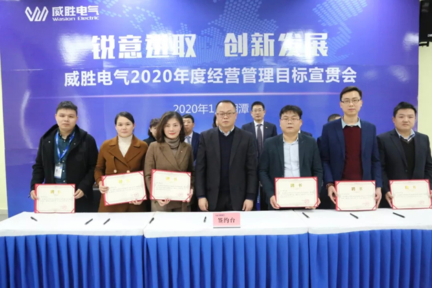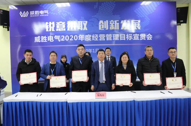 隨后,在控股董事會及各位領(lǐng)導(dǎo)同仁的共同見證下,電氣董事長、總裁及核心經(jīng)營管理團隊及核心中層干部正式簽署了2020年度經(jīng)營目標(biāo)任務(wù)書。目標(biāo)承諾書是責(zé)任,更是動力,激勵著威勝人將思想、行動統(tǒng)一到落實新的目標(biāo)任務(wù)。