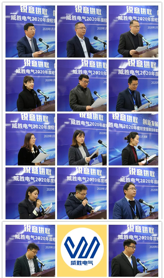 2020年經(jīng)營管理目標(biāo)宣貫會共分為宣讀人事任命、簽定目標(biāo)責(zé)任書,和領(lǐng)導(dǎo)干部代表發(fā)言三個階段。首先,會議宣讀了2020年威勝電氣總裁任命、電氣核心經(jīng)營管理團隊和核心中層干部的人事任命。