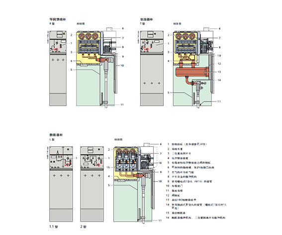 —對(duì)于變壓器柜,采用插拔式肘型頭或螺栓式T型頭(M16)