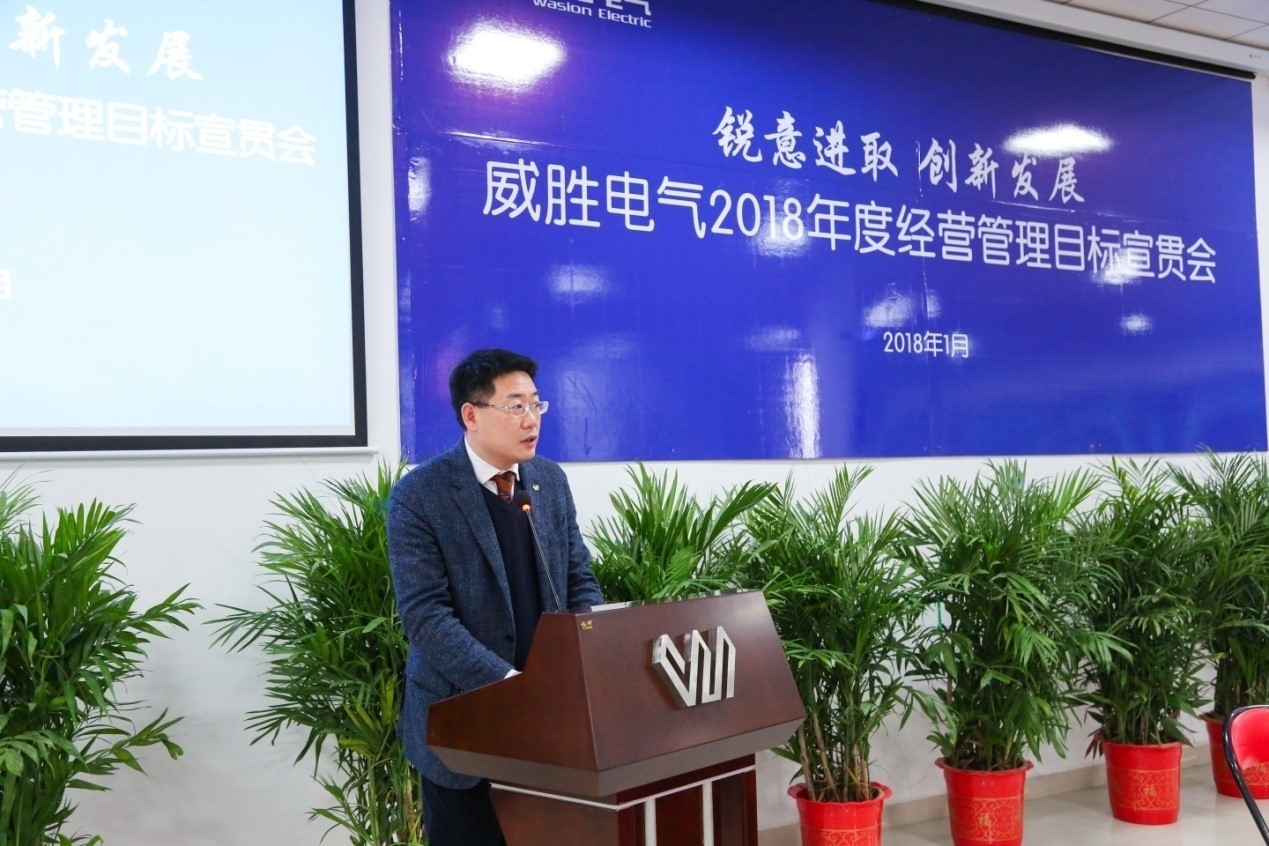 2018年經(jīng)營管理目標宣貫會共三個階段:首先,會議宣讀了2018年威勝電氣總裁任命、電氣經(jīng)營管理團隊和銷售負責(zé)人的人事任命。