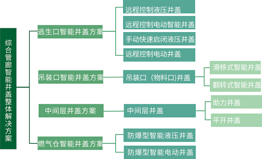 針對(duì)綜合管廊各個(gè)井口蓋板具體應(yīng)用中遇到的問(wèn)題,威勝運(yùn)用自己的豐富經(jīng)驗(yàn),結(jié)合相關(guān)先進(jìn)技術(shù),專(zhuān)門(mén)為綜合管廊吊裝口、逃生口、檢查口等打造了一套完整的智能井蓋解決方案。