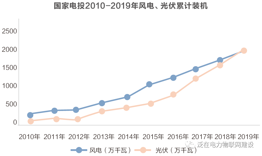 與此同時,華能集團還提出“兩線”“兩化”發(fā)展戰(zhàn)略,其中“北線”主要指“三北”地區(qū),以特高壓送出通道起點為依托,布局一批距離市場近、輸送距離短、市場競爭力強的優(yōu)質(zhì)風光煤電輸用一體化基地;“東線”主要圍繞東部沿海省份,著力打造有質(zhì)量有效益、基地型規(guī)?;?、投資建設(shè)運維一體化的海上風電發(fā)展帶。截至2019年底,華能集團的風電累計裝機1996萬千瓦,光伏累計裝機近400萬千瓦。