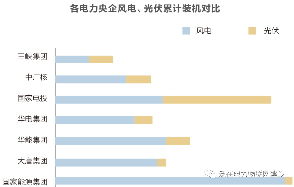 不難發(fā)現(xiàn),中廣核、三峽集團的新能源累計裝 機容量正在向五大發(fā)電集團逼近,未來亦將成為風光資源強有力的競爭者。